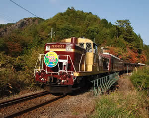 渓谷と山々、自然と調和するローカル列車(レールバス)です。四季折々の車窓からの眺めが素晴らしい路線で、トロッコ列車が大間々~足尾間で運行されています。