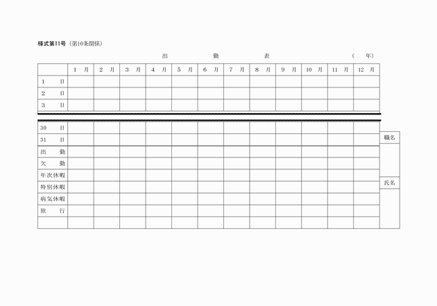 第10条 職員は、出勤したときは、直ちに出勤表(様式第11号)に押印しなければならない。