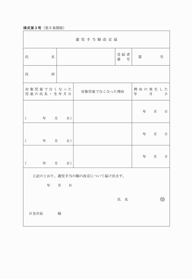 ○日光市遺児手当支給条例施行規則