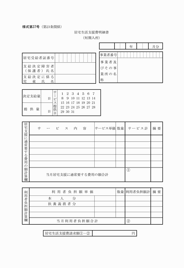 (5) 居宅生活支援費明細書(短期入所)(様式第37号)