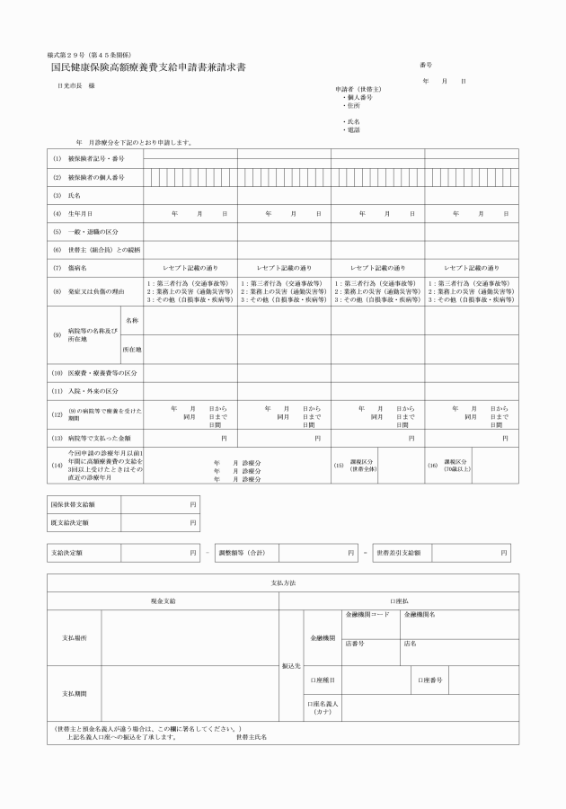 (8) 省令第28条第1項の規定による特別療養給付申請書 様式第46号