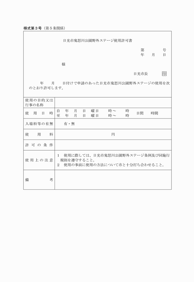 ○日光市鬼怒川公園野外ステージ条例施行規則