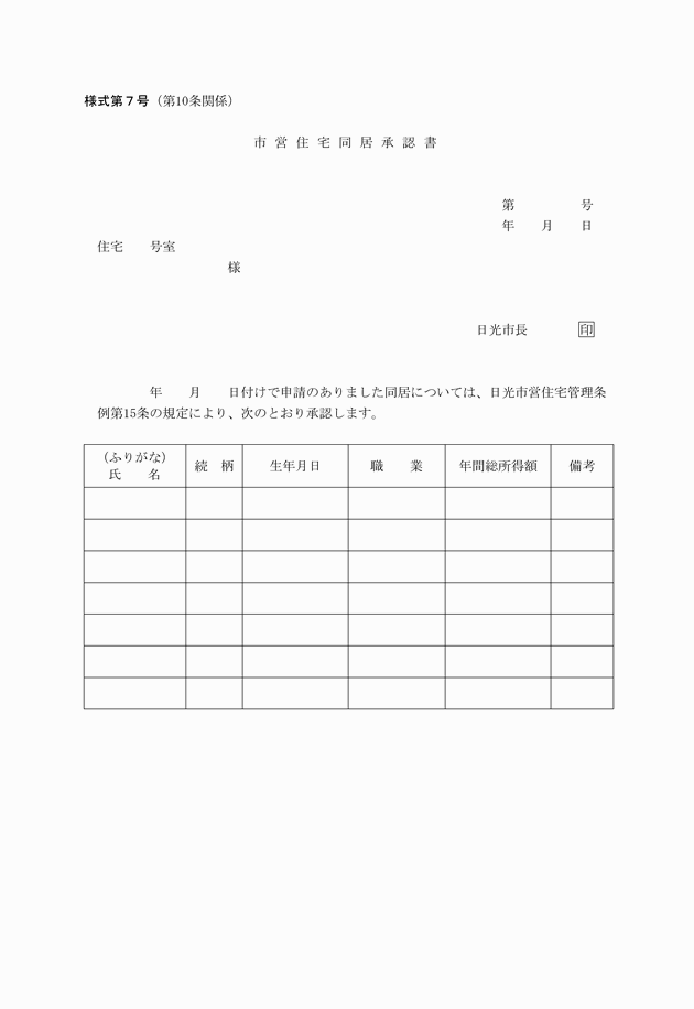 第12条 入居者は、毎年8月末日までに、収入申告書(様式第10号)を市長に提出しなければならない。ただし、条例第17条第1項ただし書に規定する場合は、この限りでない。