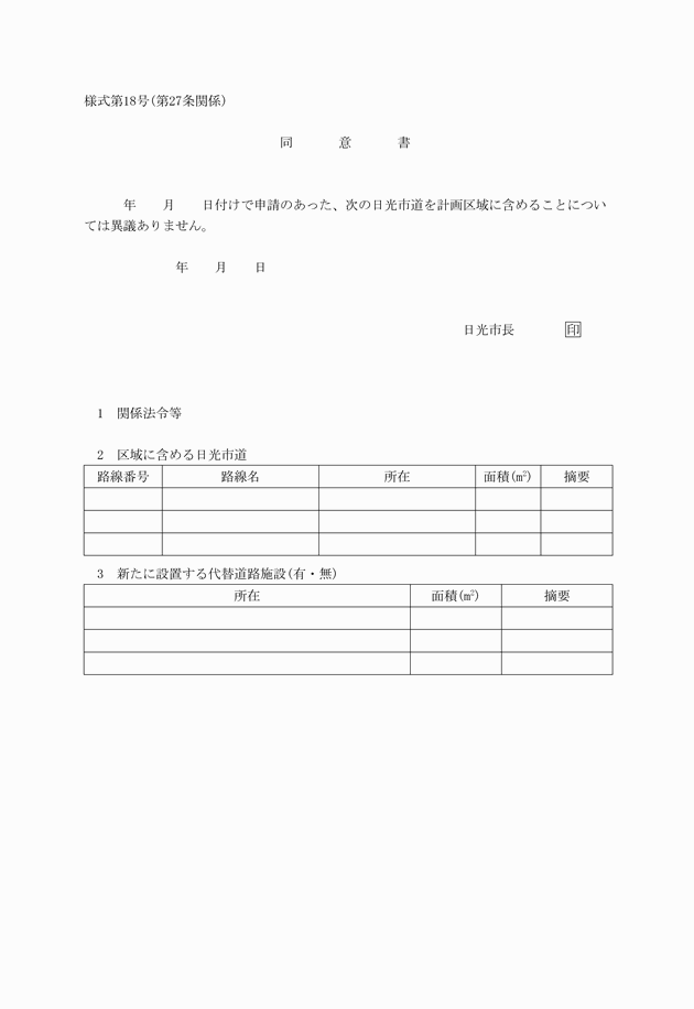 第26条 法第32条第1項の規定による許可又は法第24条の規定による承認を受けようとする者で、法令等に定めのある同意をあらかじめ得ようとするときは、同意申請書(様式第17号)により申請しなければならない。
