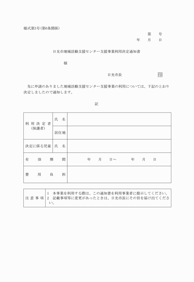 第7条 前条第2項の規定により利用決定を受けた者(以下「利用者」という。)は、事業者から地域活動支援センター支援を受けようとするときは、事業者に対し利用決定通知書を提示して、利用の申込みをしなければならない。