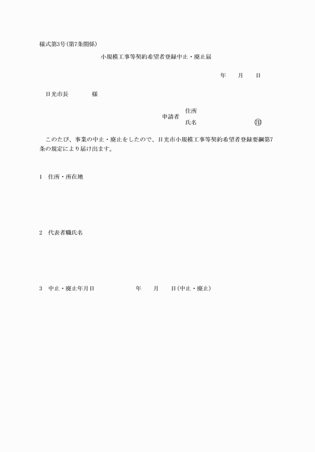 第4条 新規に登録を受けようとする者は、小規模工事等契約希望者登録申請書(様式第1号)に次に掲げる書類を添えて市長に申請しなければならない。