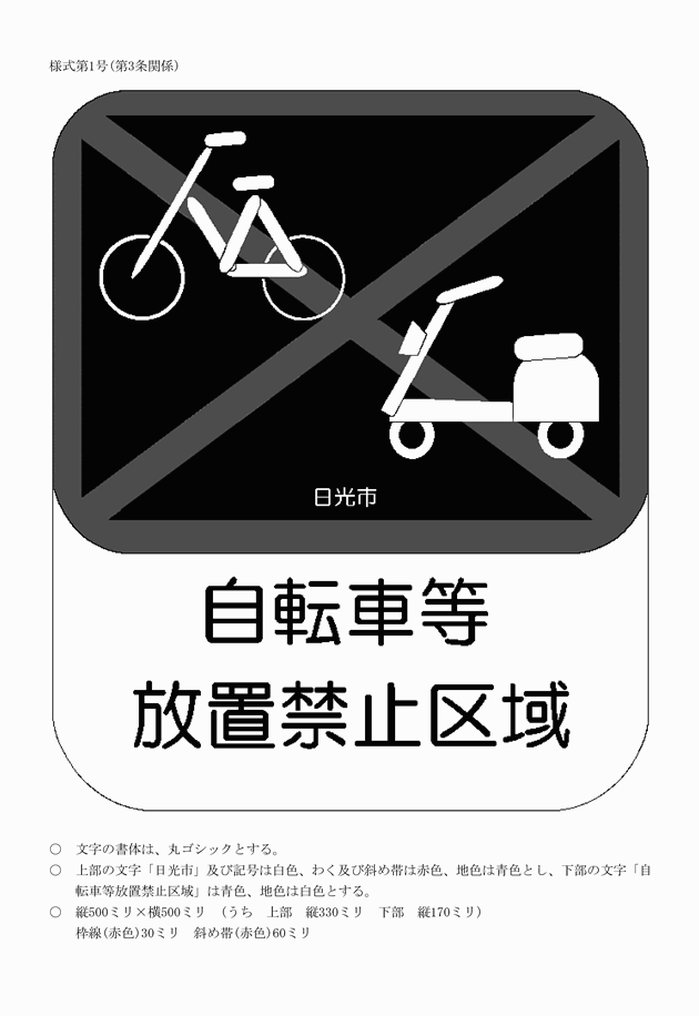 第1条 この規則は、日光市自転車等の放置防止に関する条例(平成19年日光市条例第40号。以下「条例」という。)の施行に関し、必要な事項を定めるものとする。