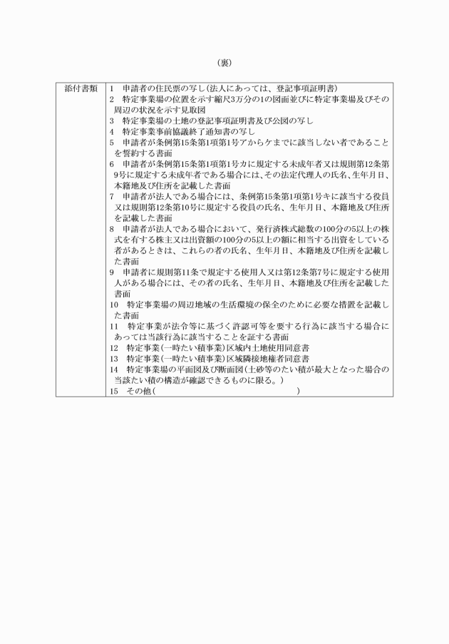 第17条 条例第17条第1項の規則で定める軽微な変更は、申請者の氏名及び住所(法人にあっては、名称、代表者の氏名及び主たる事務所の所在地)、特定事業に使用される土砂等の量(土砂等のたい積の構造の変更を伴わないものに限る。)、採取場所若しくは搬入計画又は現場管理責任者の変更とする。