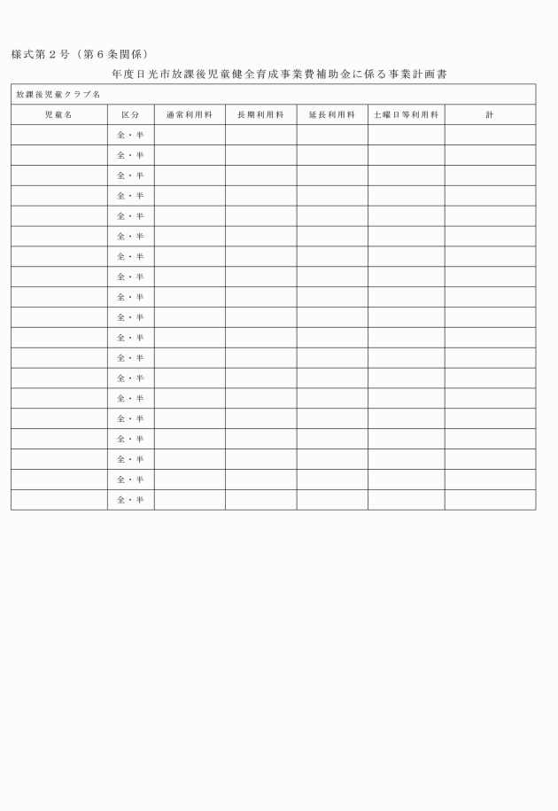 第6条 利用料の減免を受けようとする保護者(以下「申請者」という。)は、日光市放課後児童健全育成事業減免申請書(様式第1号。以下「減免申請書」という。)により受託者を経由して市長に申請しなければならない。