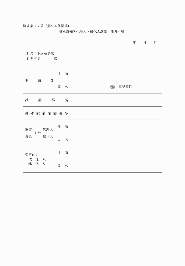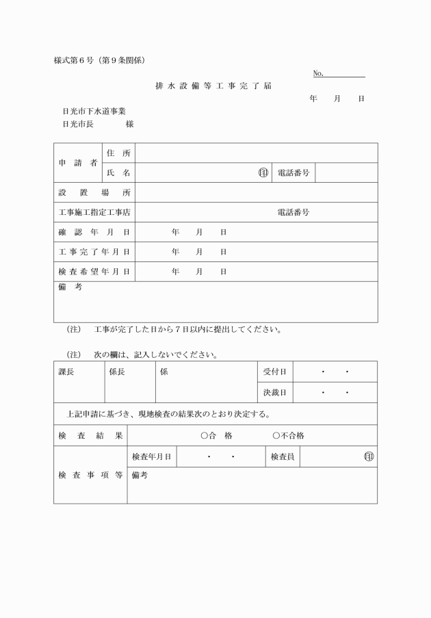 第1条 この規程は、日光市下水道条例(平成18年日光市条例第264号。以下「条例」という。)第43条の規定に基づき、条例の施行に関し必要な事項を定めるものとする。